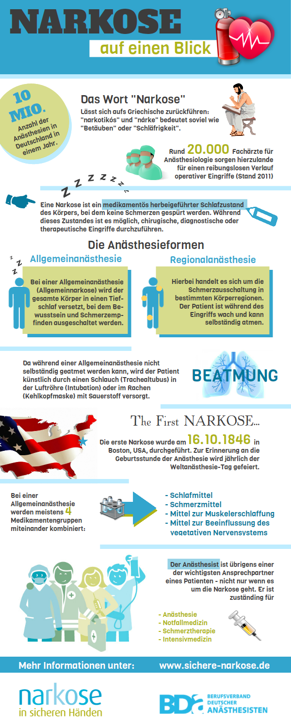 Ambulante Narkose bedeutet, dass man einen operativen Eingriff unter Narkose ambulant durchführen lässt und nach einer Erholungsphase in der Klinik am gleichen Tag wieder zu Hause ist. Dies hat neben den kostensenkenden Effekten vor allem Vorteile, dass der Patient nicht unnötig Infektionen ausgesetzt wird, Betten für andere Patienten frei gehalten werden und Kinder nicht von Ihren Eltern getrennt werden müssen.